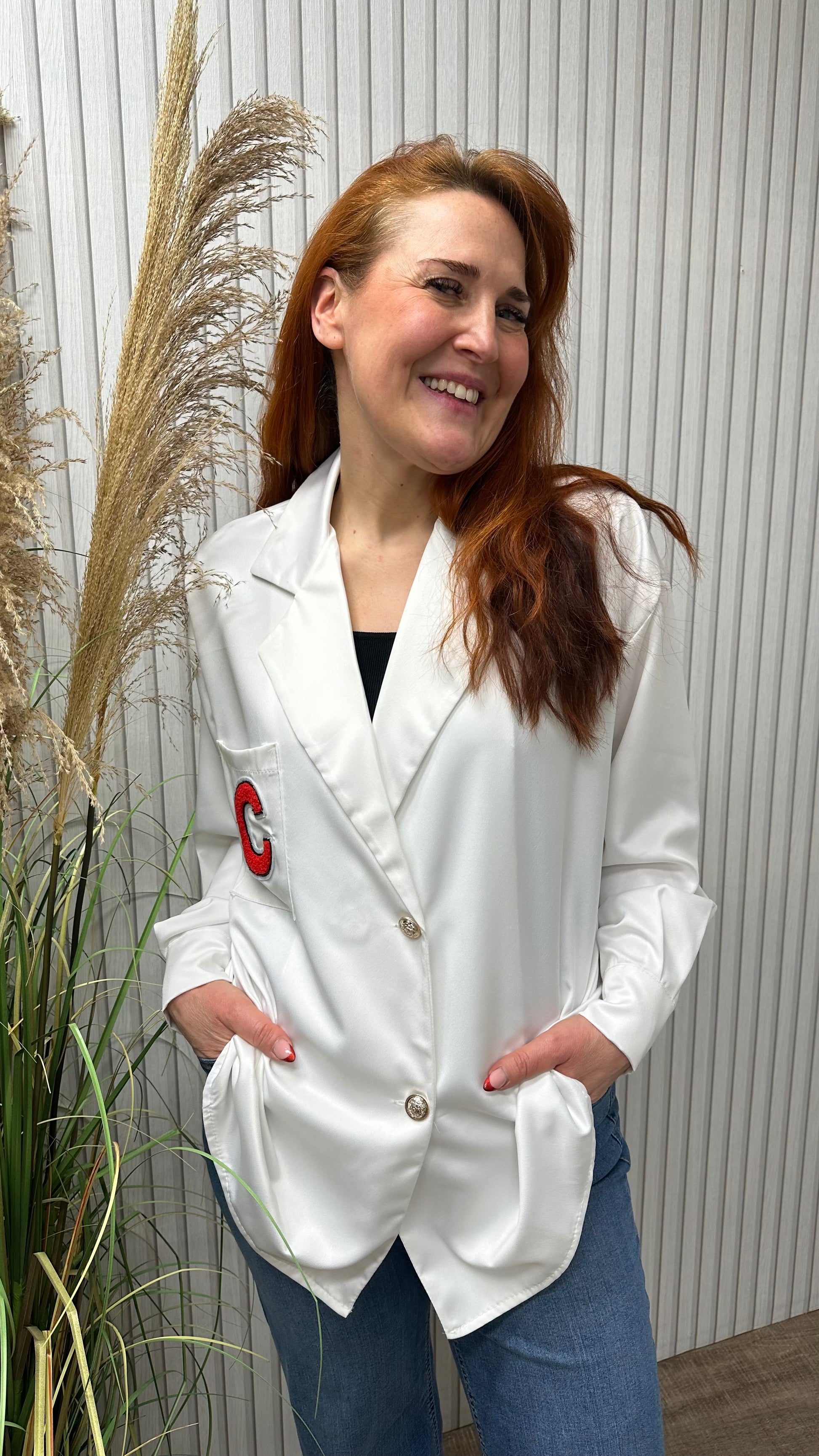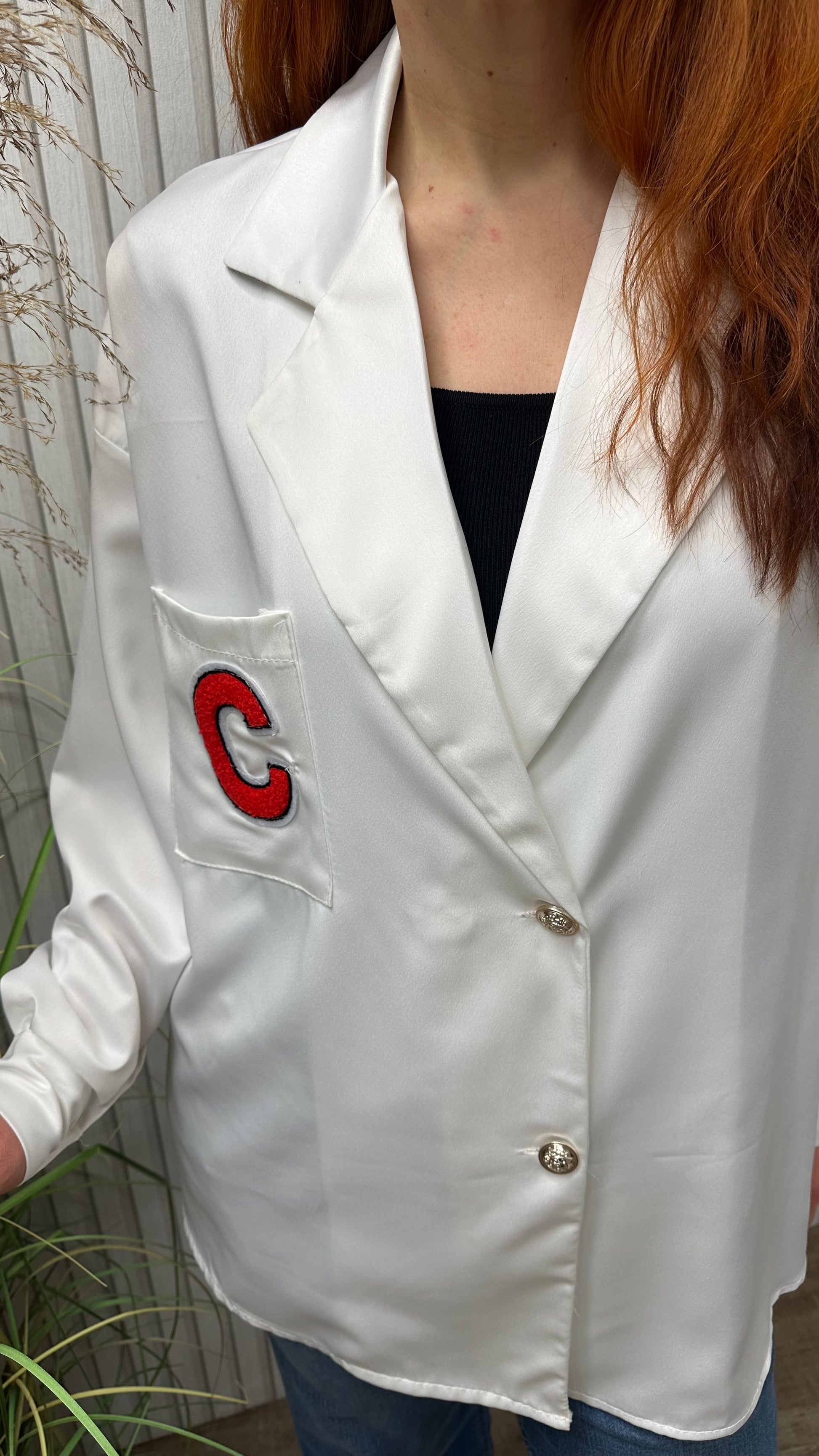 • edle Bluse mit einem „C“ auf gestickt