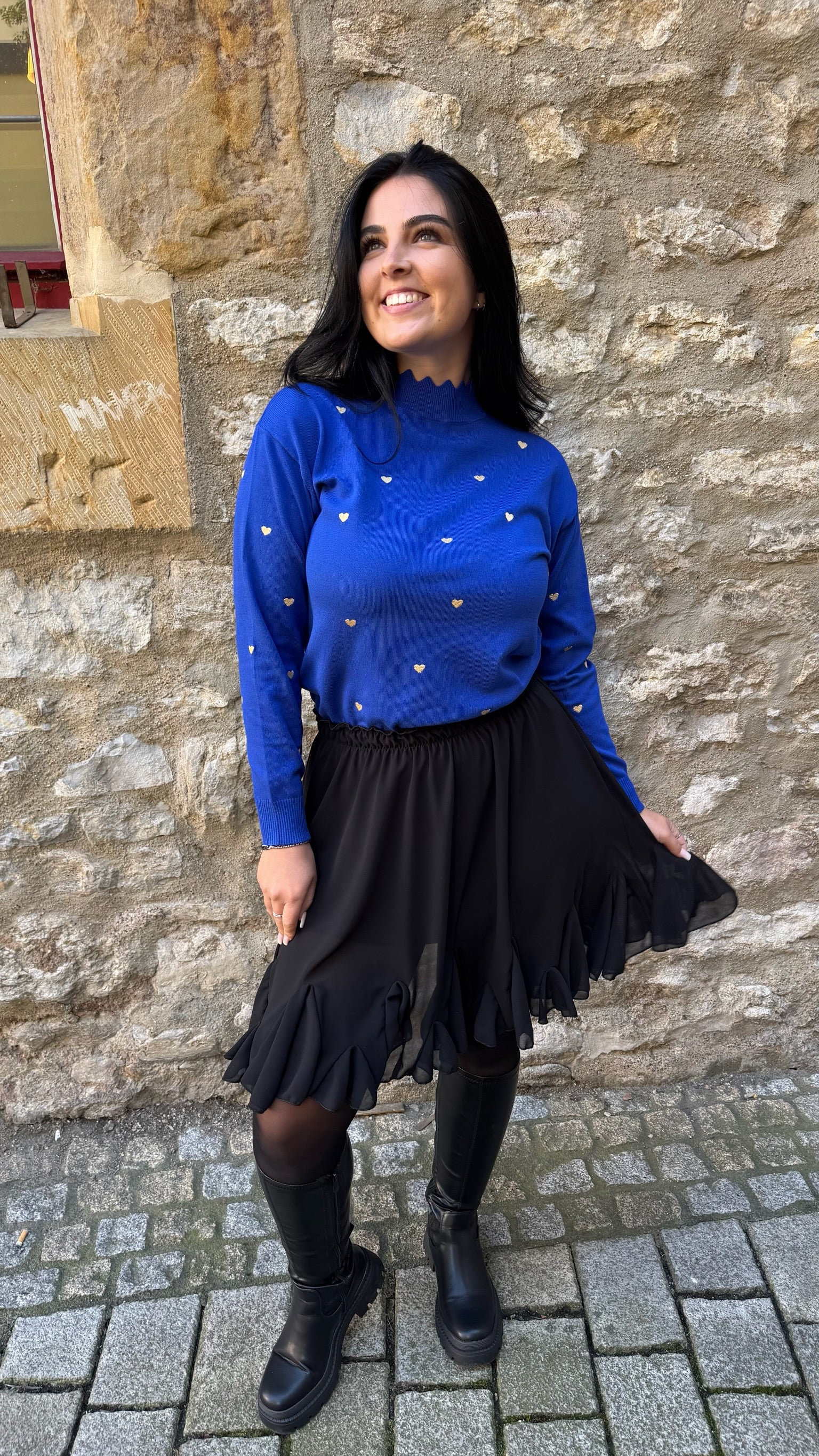• zarter Feinstrick mit goldenen Herzen