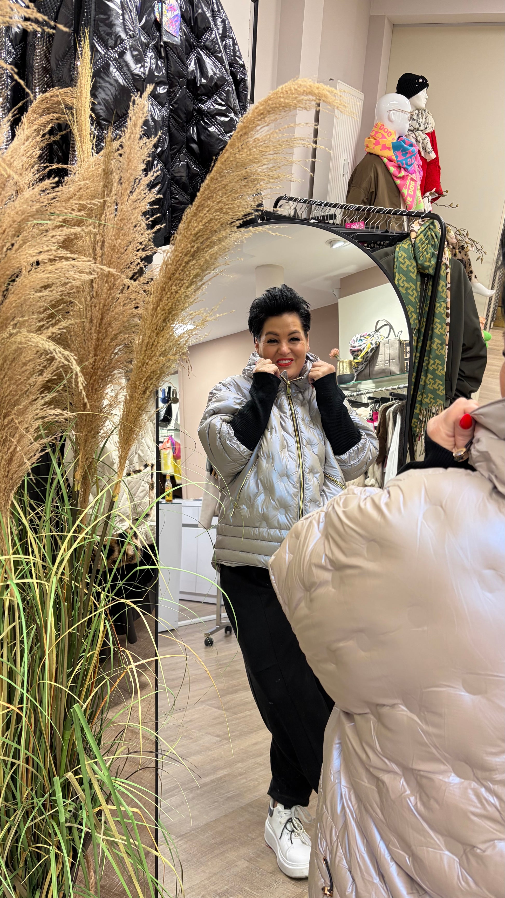 Model trägt die Größe M bei der Konfektionsgröße 40