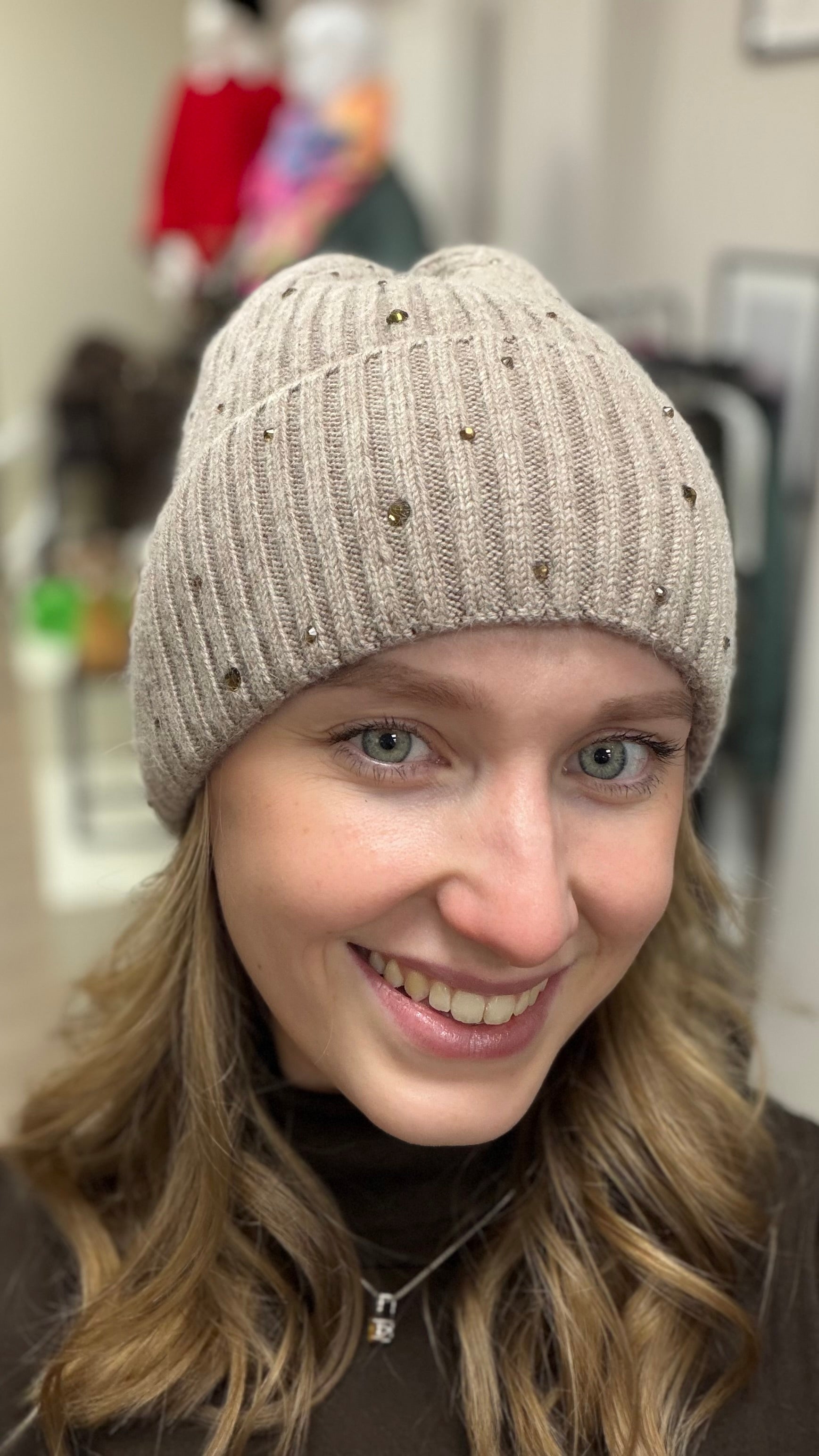 • Beanie Mütze mit Glitzersteinen versetzt