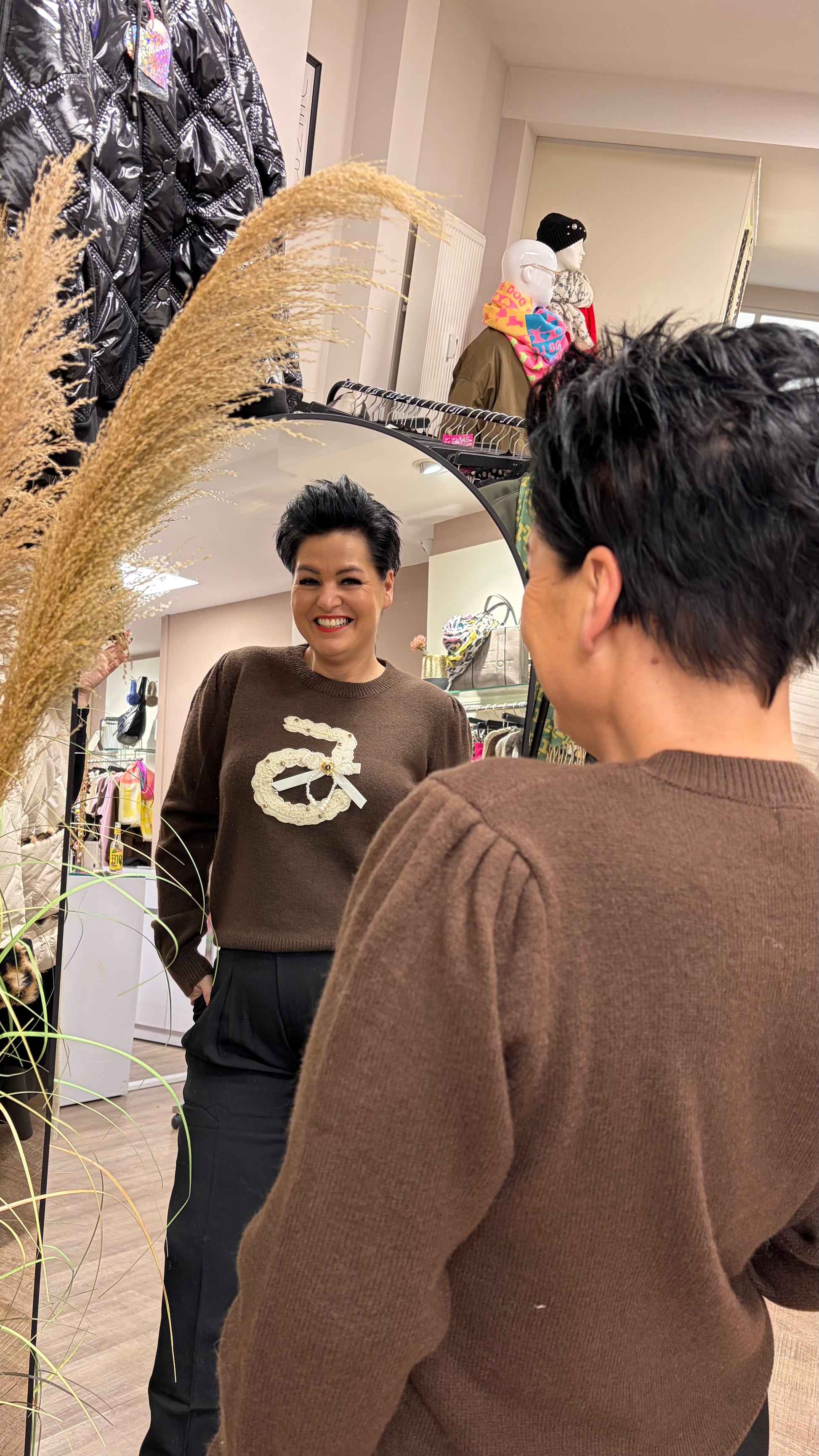 Model trägt die Größe M/L bei der Konfektionsgröße 40