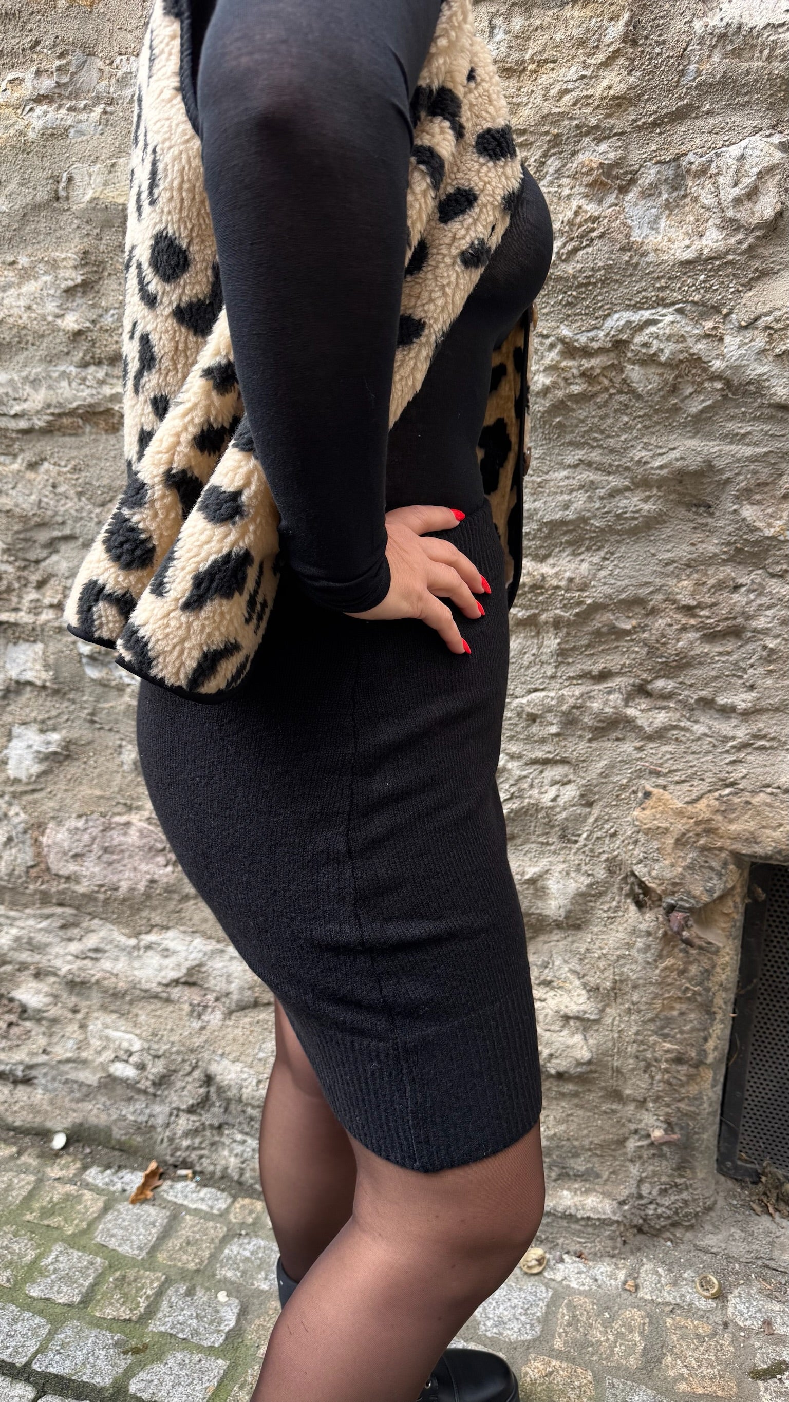 Model trägt die Größe M/L bei der Konfektionsgrösse 40