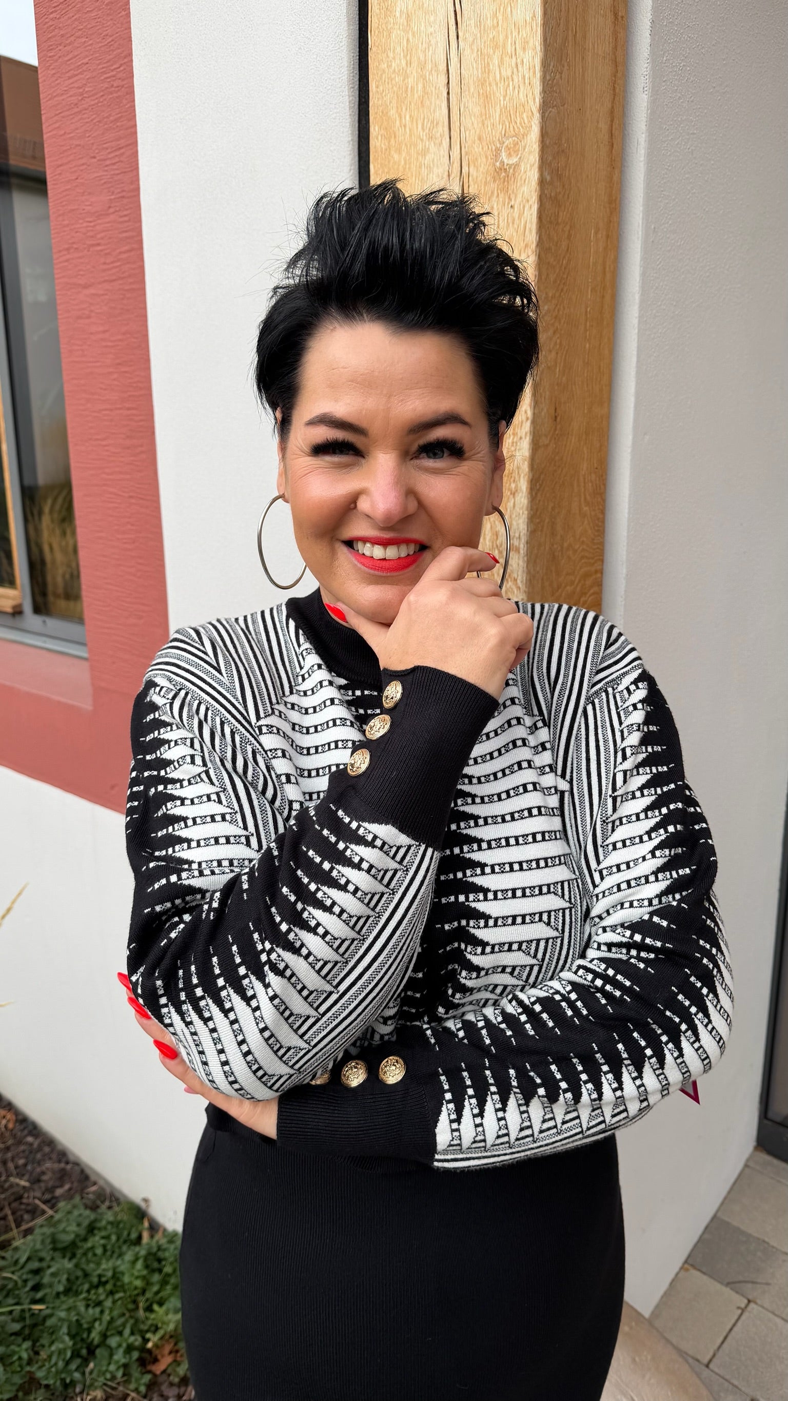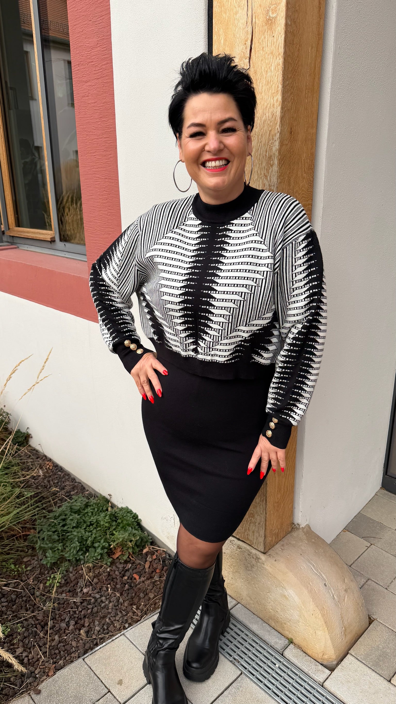 Model trägt die Größe M/L bei der Konfektionsgröße 40