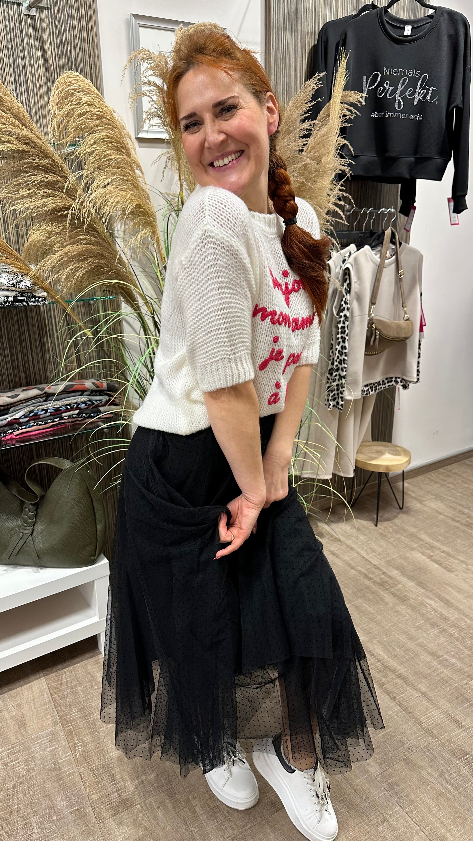 Model trägt Konfektionsgrösse 38 bei 165 cm Körpergrösse